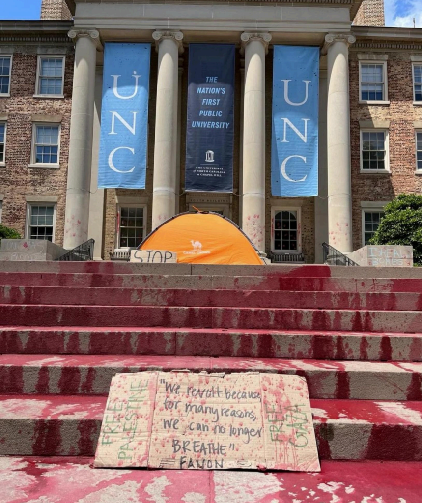 ”UNC does have blood on its hands, and UNC is complicit in occupation of partitioning genocide,” Ginn said. “And if people want to express their disgust and indignation with UNC’s complicity in genocide in this particularly colorful way, then I think that that’s a very understandable and justified thing to do.”